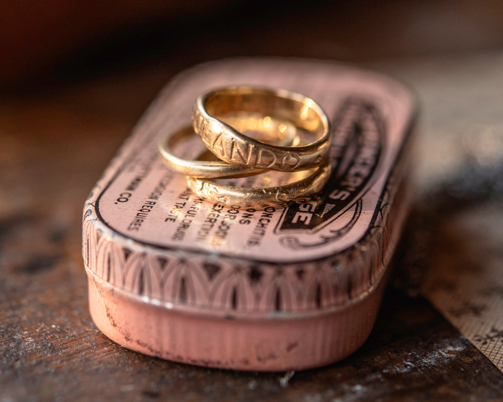 Our jewelry is made by hand – carved from wax, engraved, cast, and finished in our Barn Studio. Each piece has different nuances giving them the feeling of having been excavated after centuries underground.