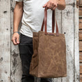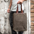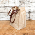 The Marlowe Carryall is a reusable ‘paper bag’ constructed of waxed canvas and vegetable-tanned leather – ideal for carrying anything from books and daily necessities to groceries. The Carryall is constructed like a super market brown bag and made to last. It fits comfortably over the shoulder, and is finished with a little pocket on the inside for small things such as lip balm, money, a cell phone, &c.