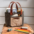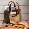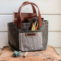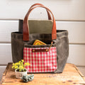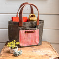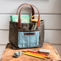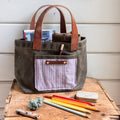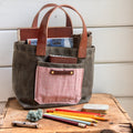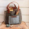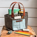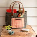 Our Pipit Totes are inspired by an irresistible batch of the smallest scraps from a home sewer’s stash — squirreled away for fifty or so years for an unknown adventure. We paired them with our love for small things to create our a bag that frames these little treasures as a useful pocket. Fill it with art supplies, a book, a journal and head out! I’ve been feeling a little fancier than usual with mine in tow!