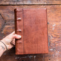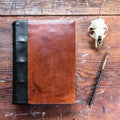 Each of our Tomes has hand-stitched headbands on the top and bottom and raised chords on the spine. Inside you will find line-free Strathmore drawing paper – thick, hand-torn, acid-free pages that work wonderfully with ink, pens (smooth and scritchy-scratchy), pencils, watercolours, and a myriad of other mediums. The pages are hand-stitched with linen binder’s thread, and shaped and re-enforced with linen book binding chord and tarlatan. Our Tomes are meant to be carried daily and can take a beating. They are strong creatures, ready to accompany all aspiring treasure hunters, adventure seekers, documenters, and storytellers.