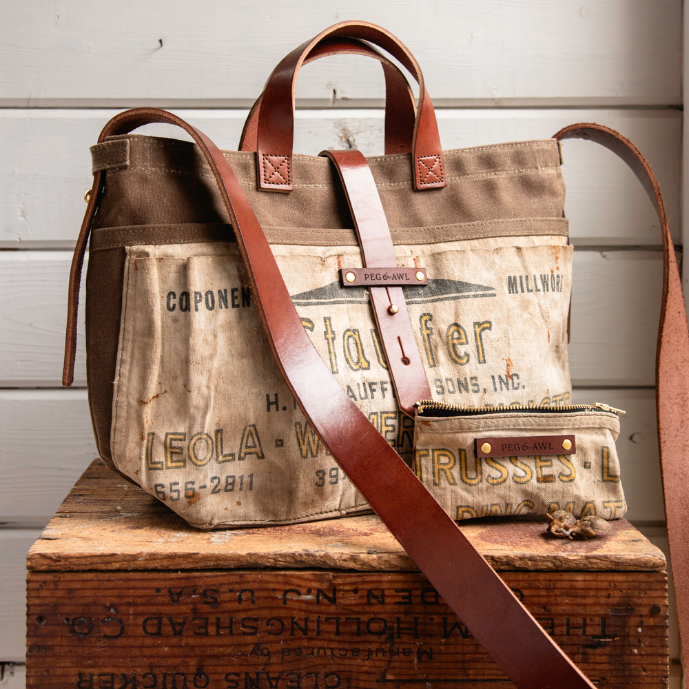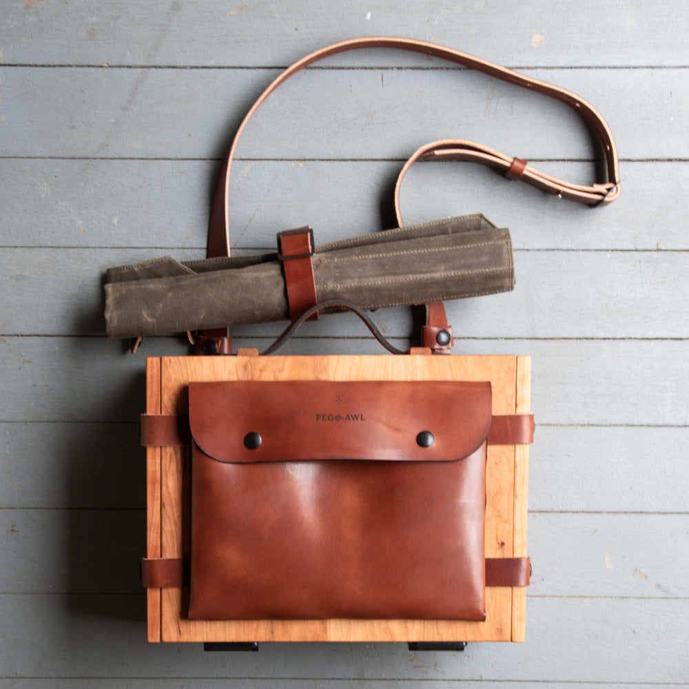 At Peg and Awl our work is often inspired by necessity and usefulness. In the beginning it nearly always incorporated old things, but as these abandoned materials became harder to find, we began to search for – and eventually found – a sustainable worthy successor. Now we make our objects from sumptuous and ethical new materials whose solid foundation quickly accumulates adventure’s marks, and when we get our hands on old materials, we incorporate them into the assortment.