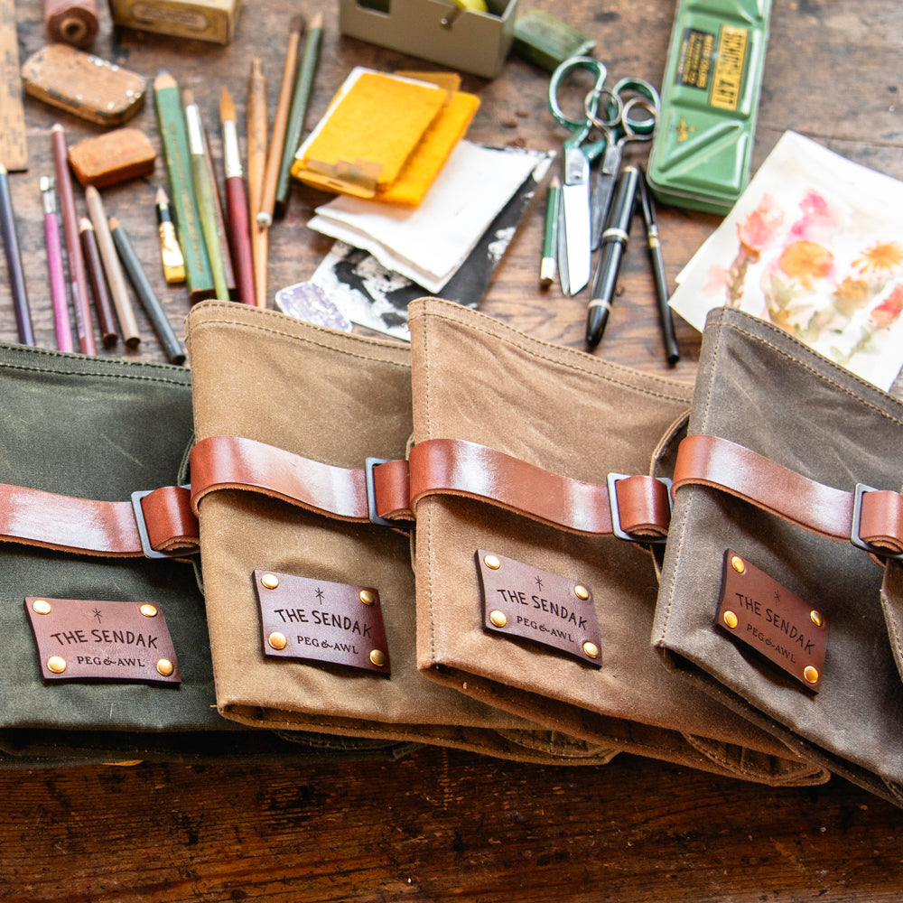 We’ve been using waxed canvas since the early days of Peg and Awl — and still adore it. Ours comes from Martinex, a 6th generation company whose roots go back to Philadelphia in the 1800s. Waxed canvas is a tried-and-true material whose origins began in the sailing industry in the 15th century because of its waterproofing abilities and superb durability! We love that the canvas quickly breaks in and gathers marks from adventures and use. Our standard collection consists of earthy colors that are hand-dyed and waxed. Keep an eye out for our small batches of limited waxed canvas colors!